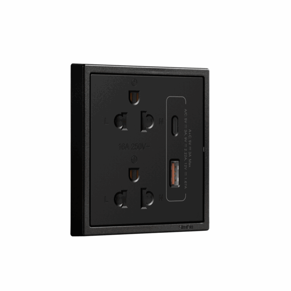 เต้ารับปลั๊กคู่ 3 รู มีม่านนิรภัย พร้อมที่ชาร์จ USBและUSB-C